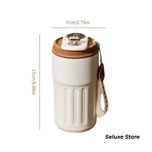 Stainless Steel Insulated Coffee Mug with Temperature Display – 500ml Smart Travel Cup with Leakproof Lid, for Office & Car