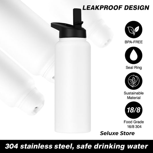 Magnetic Lid Stainless Steel Water Bottle – 34oz (1000ml) Leakproof Vacuum Flask for Sports & Outdoor